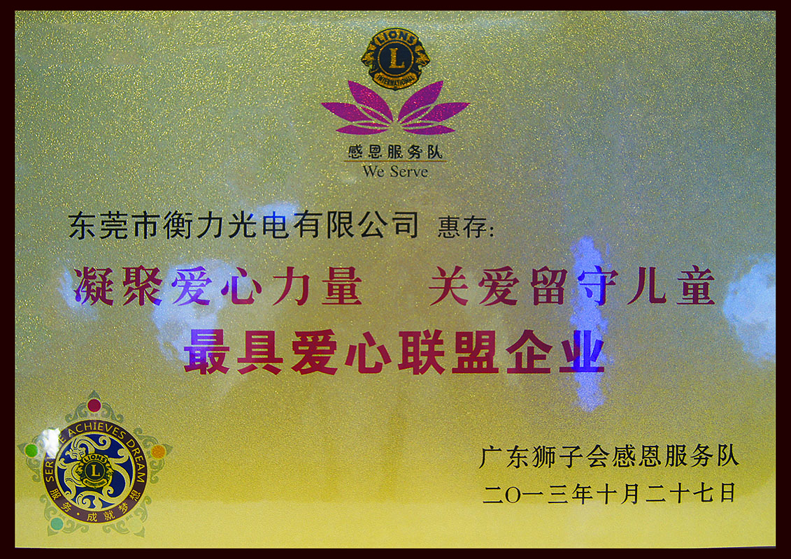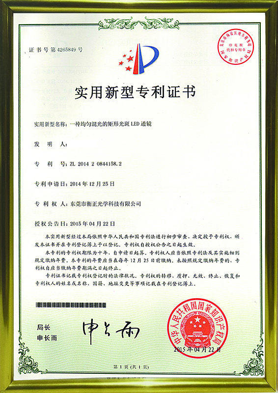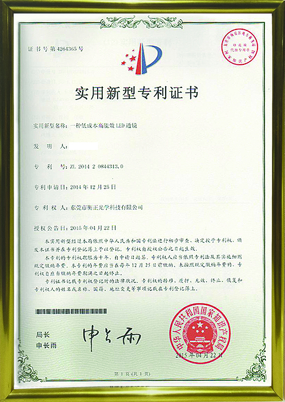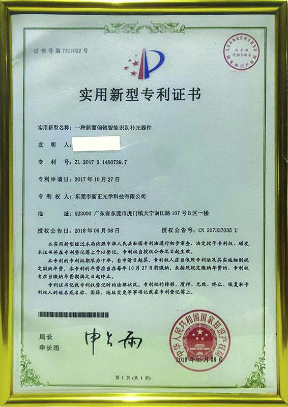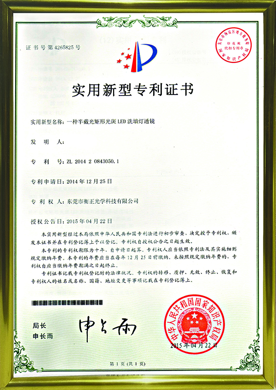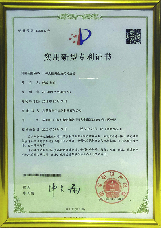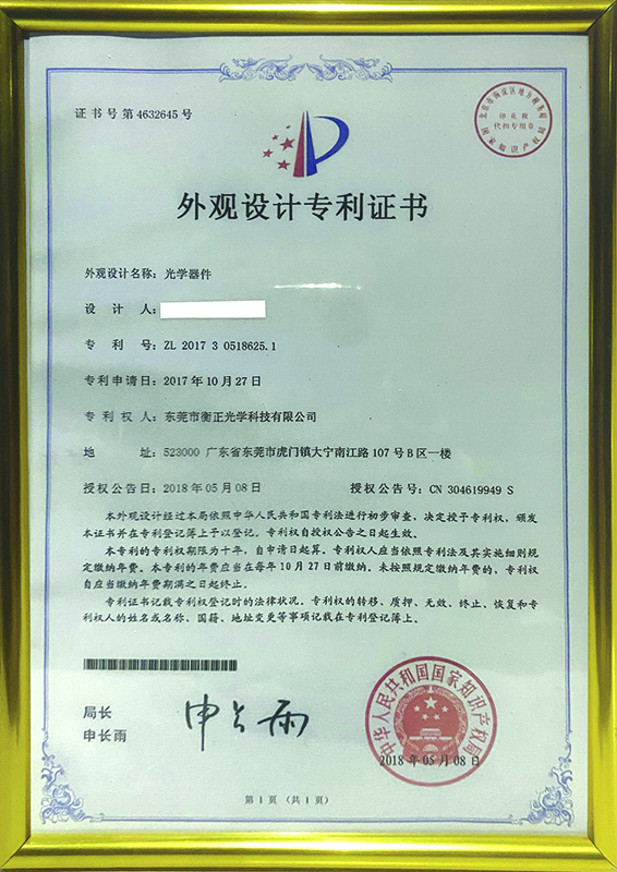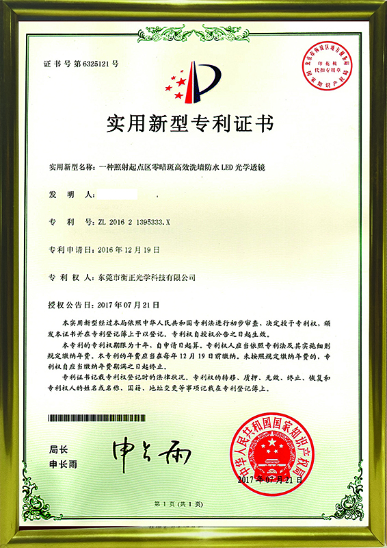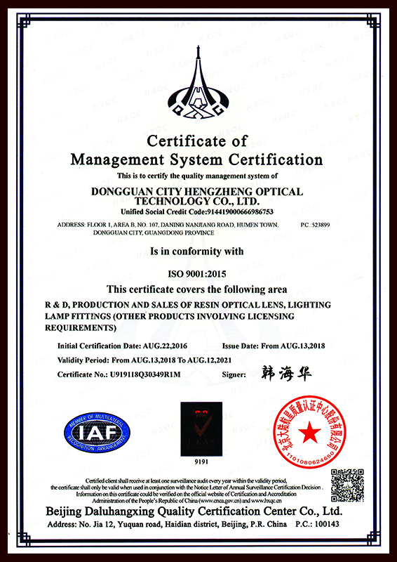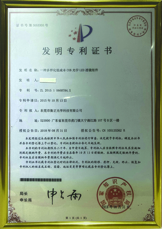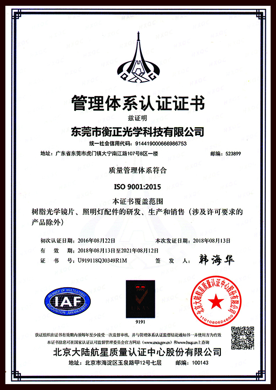 LED照明技术飞速发展更新的过程中,衡正光学全体同仁坚持"诚信务实、创新致远"的经营理念,在拥有专业的光学设计和制造技术的背景为前提下,使我们能够自主开发出符合各种光源角度、光型及混光功能的透镜,如精准投射光形、蝠翼光形、特效混彩光效、广角度背投高均匀度配光光效等,以满足客户在LED照明领域中的不同需求!在企业发展健全进程中,衡正光学通过了ISO:9001质量管理体系认证,申请了多项国家专利技术,如路灯透镜、直下式TV透镜专利等,以多年建立的市场营销品牌,注册了"衡力光电"商标,更促进我们发展进步!