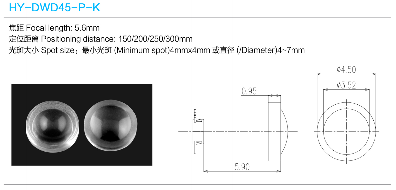 光斑大小Spot size:最小光斑(Minimum spot)4mmx4mm或直径(/Diameter)4~7mm