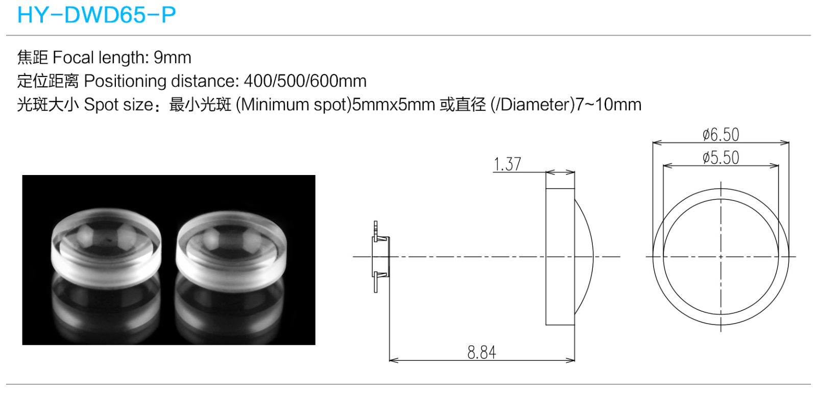 光斑大小Spot size:最小光斑(Minimum spot)5mmx5mm或直径(/Diameter)7-10mm