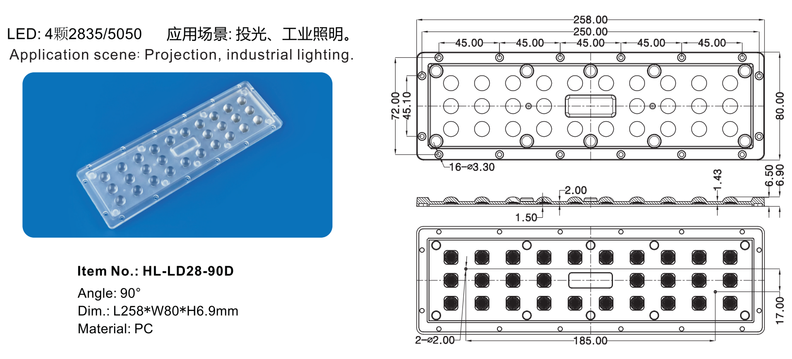应用场景:投光、工业照明。